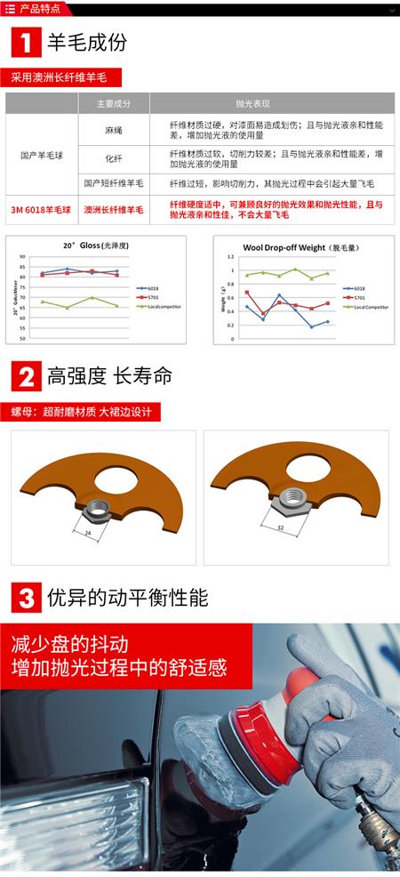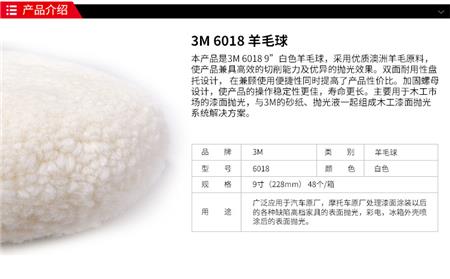 3M 6018双面羊毛球3寸羊毛盘抛光盘抛光球主要用于汽车美容、玻璃制品、医疗器械、精密仪器、刀具、金银饰品、贵重金属等表面的抛光打磨。