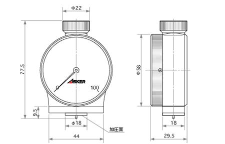ASKER橡胶硬度计ISO-A型 符合ISO 7619 - 2004,JIS K 6253 - 2006标准,一般(中硬度)橡胶,类似A硬度计。