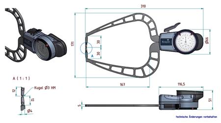 德国kroeplin针盘式外卡规D450,测量范围0 -50 mm,测量精度0.05mm,喉深长度:167mm。