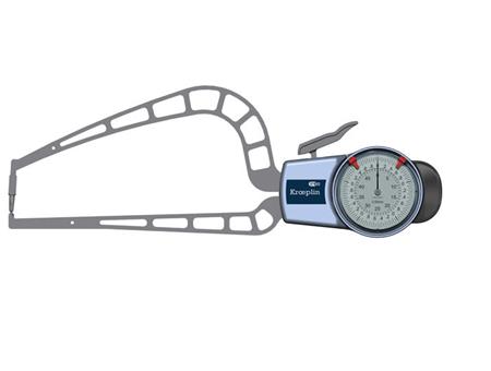德国kroeplin带表外卡规D4R50,测量范围:0-50mm,精度:0.05mm,探头臂长:169毫米。适用于管壁测量。