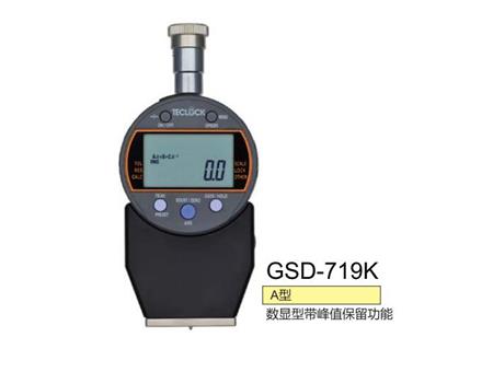 日本得乐A型数显橡胶硬度计GSD-719K,带峰值保留功能,适用于一般橡胶如轮胎、橡胶水管的测量。通类型的数显橡胶硬度计产品有GSD-720K(D型)、GSD-721K(E型)等。