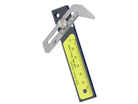在刃磨过程时用以确认钻头的中心点及形状。 除了标准角度的118°外,这量规还能够用以测量其他角度(60°, 120°, 130°, 140° 和 160°)。