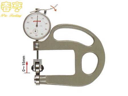 日本 peacock孔雀滚轮式厚度计HR-1测量范围0-15mm,精度0.01mm,测定喉深70mm,适用于纸张、胶带厚度在线连续性检测。