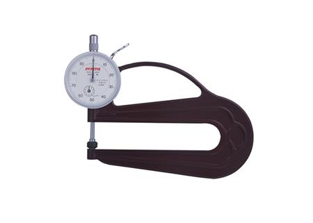 专业测量小零件,金属,橡胶,塑料,纸张,铝箔等片状材料的厚度。 被测定对象由简单的杠杆操作夹紧。