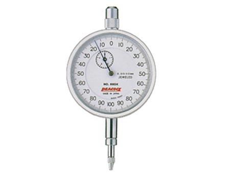 日本peacock孔雀指针式千分表55DX,精度:0.001mm,量程:5.0mm,测头型号为:X-1,凸背型千分表,小表盘式(Φ57mm)。