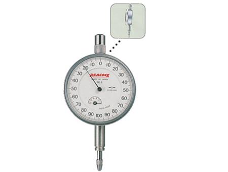 日本peacock孔雀指针式千分表5F,精度:0.001mm,量程:1.0mm,测头型号为:X-1,平背型千分表。