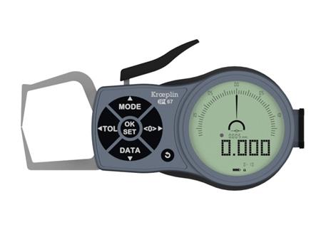 德国kroeplin数显外卡规K110S,测量范围:0-10 mm,最高探头臂长L:35毫米,防护等级:IP65。