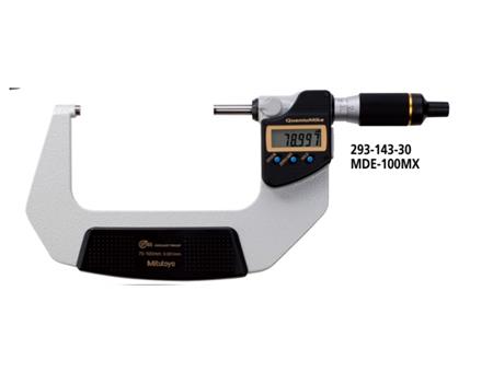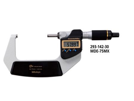 日本三丰mitutoyo数显外径千分尺,货号:293-140-30,型号:MDE-25MX,QuantuMike (快进千分尺),IP65防冷却液等级,进给速度达到2mm/rev,测量范围0-25mm,分辨力0.001mm。单手握持即可在同一测量时间内实现6步测量,与传统千分尺相比,定位时间和测量时间可分别降低60%和35%。
