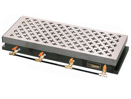 利用真空气压来固定工件的。适用于加工非金属和非磁性材料。适合磨研磨和切削塑料和铝、黄铜、不锈钢、陶瓷和玻璃。这种吸盘适用于打磨和切割塑料, 同时也可以打磨铝,铜,不锈钢,陶瓷和玻璃。