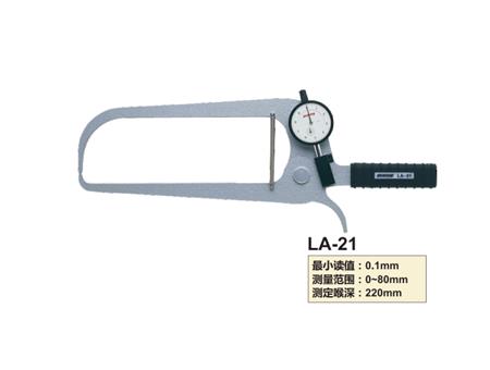 孔雀peacock带表外卡规LA-21,测量范围0-80mm,测量精度0.1mm,测定喉深220mm,读取误差±0.2mm。必威平台官网 工具孔雀量具代理商。