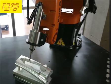 铝铸件去毛刺用工业机器人怎么加工?建议在机械臂末端加装自动换刀电主轴NR3060-AQC,转速高达6万转/分钟,跳动精度1μm以内,可通过气源的开关和闭合进行快速换刀,自动更换刀具,提高去毛刺效率。