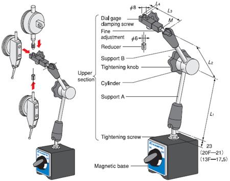 活动角度和方向比MB系列更高的磁性表座;表座更可以固定量表以外的测量工具(如传感器).
