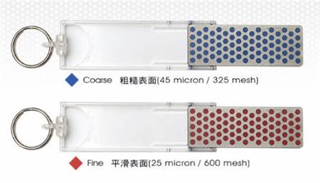 粗糙表面适合磨利较钝的刀具。 DMT的单晶金刚石表面比起一般的磨刀石,能更快的磨利您的刀具! 而且完全不需要用油!耐用的特性让您可以长久使用。
