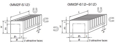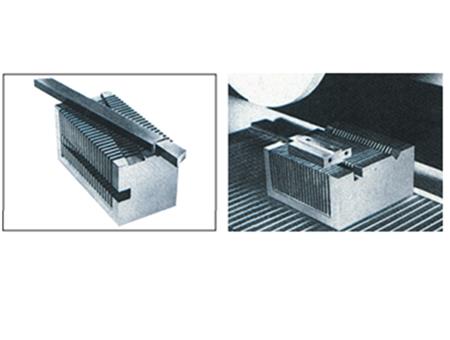 磁块在固定工件时,表面有细槽来吻合工件形状.