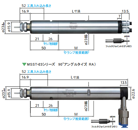 外径材质为高硬度热处理,形状有直线型和90°2种。(R-直线型,RA-90°型)