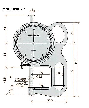 测头由弹簧的力向上拉,在轨距的顶部的旋钮压下手指夹紧在测量的对象。它会显示被测对象的厚度,高度和直径数值。