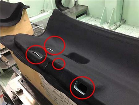 汽车后备箱里的内部装饰,由无纺织物与树脂结合冲压而成,后尾箱里的各种槽和灯孔有很多毛边需要修整,推荐使用日本NAKANISHIbetwayapp官方下载 EMS-3060K加装在6轴机械臂上,高速旋转加工,抛光效果好!