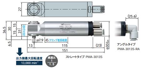 PMA-3013S | Φ30mm | 13,000 min-1 | 3μm以内 | 130W | 42cN.m | 520g |
