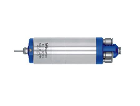 中西NAKANISHI气浮主轴ABT-1000,外径40mm,最高转速100,000转/分钟,输出功率88W,跳动精度1μm,在10万转的高速旋转下也能保持1μm的跳动振动。由于采用空气浮动和旋转轴的机制,比滚珠轴承寿命更长。目前在半导体等高精密加工领域应用较大。