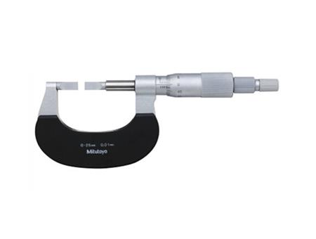 三丰薄片千分尺122-101测砧和心轴的端面为薄片型,可用于测量花键轴,键槽等不容易测量位置的凹槽尺寸,棘轮锁定装置可保持恒定测力