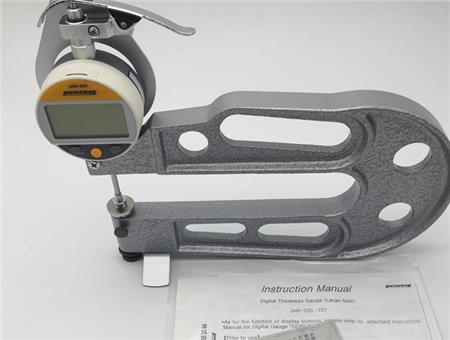 日本孔雀数显厚度计JAN-255,测量范围:0-20mm,精度:0.001mm,测厚深度:150mm。可以测量宽片材的中心,如纸,聚氨酯,乙烯树脂,橡胶和金属箔等。