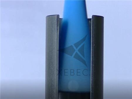 SUS管状零件内壁自动化去毛刺研磨刷,推荐日本原装进口XEBEC锐必克蓝色内孔刷,加装在CNC加工中心或者机械臂上使用,利用高速旋转的离心力使研磨刷张开,去除毛刺。