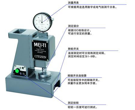 IOS(新JIS)规格基准,可进行测试间隔1-9秒的连续自动测量,可选用配件中的脚踏开关,可用于测量软胶片,橡胶片等
