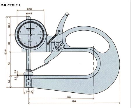 日本孔雀peacock测厚规J-B,测量范围0-35mm,精度0.05mm,测量喉深大,喉深140mm,可以测量宽板的中心厚度。